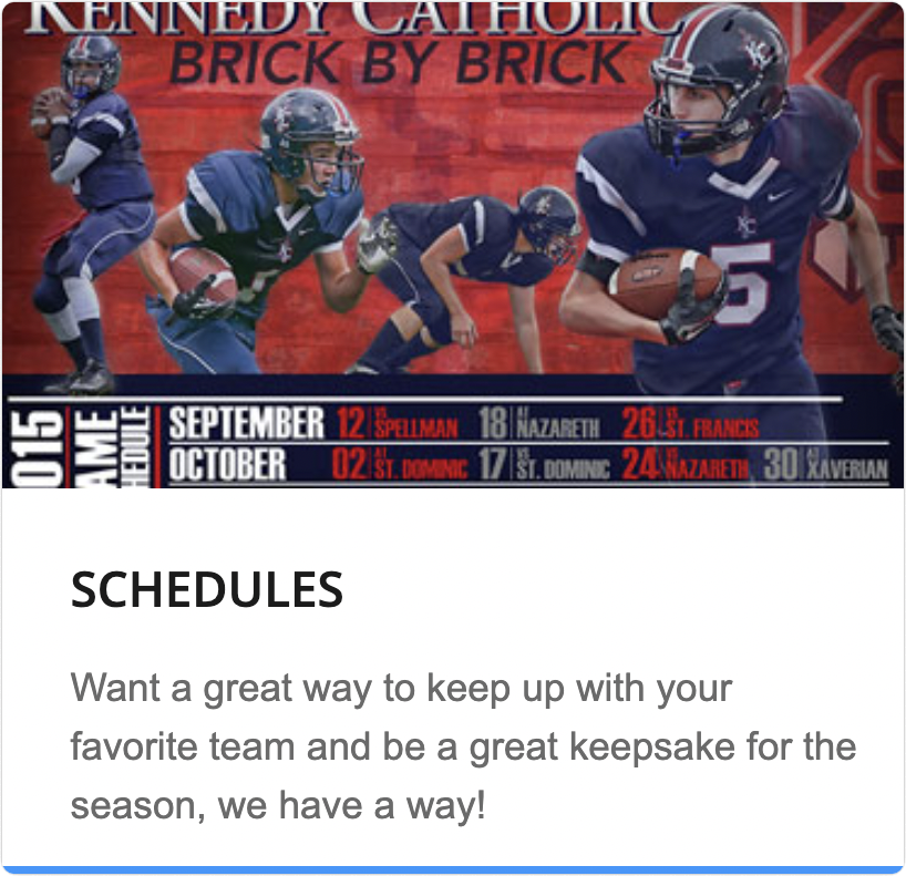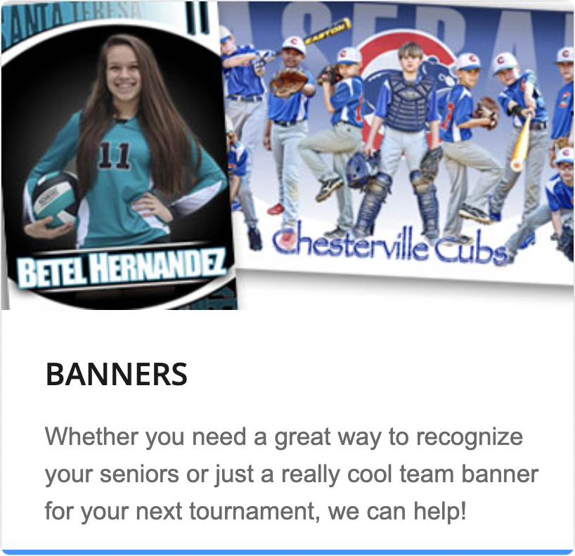 We are a sports design company who has been creating custom products like banners, posters, team gifts, and schedules for high schools, colleges, and youth sports for over 20 years to make them look like a pro.
